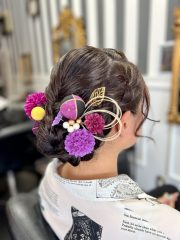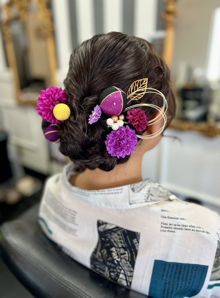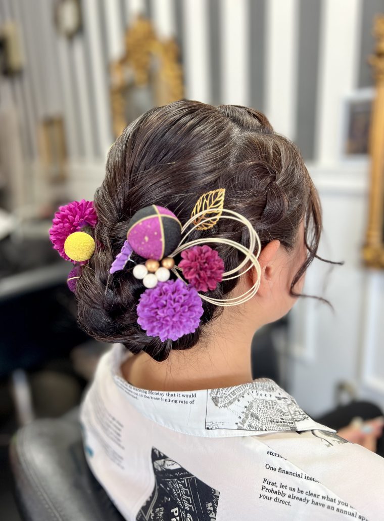 | 成人式にオススメヘアセット🪻 | ご来店頂きありがとう御座います🤲🏻 黒や紫の髪飾りで、 華やかかつ上品な仕上がりとなりました🫧 ーーーーーーーーーーーーーーーーーーーーー 当店では髪飾りも販売しております💐 お着物に合わせた、オーダーメイドの商品を ご用意しておりますので お悩みの際はお気軽にご相談下さい🙇🏻 |