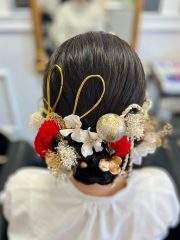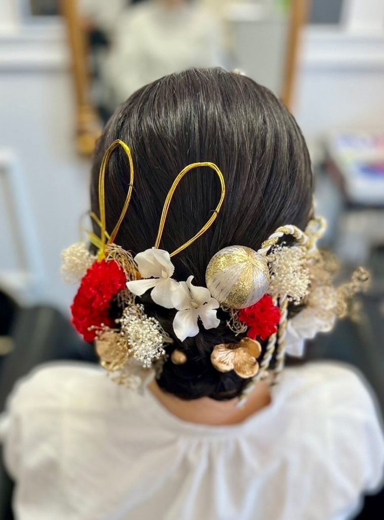 | 成人式にオススメヘアセット🌹 | ご来店頂きありがとう御座います🙇🏻 赤や金の華やかな髪飾りと、金の水引で とても美しい仕上がりとなりました✨ ーーーーーーーーーーーーーーーーーーーー 当店では、髪飾りも販売しております💐 お着物に合わせた、オーダーメイドの商品を ご用意しておりますので お悩みの際はお気軽にご相談下さい🙇🏻 |