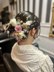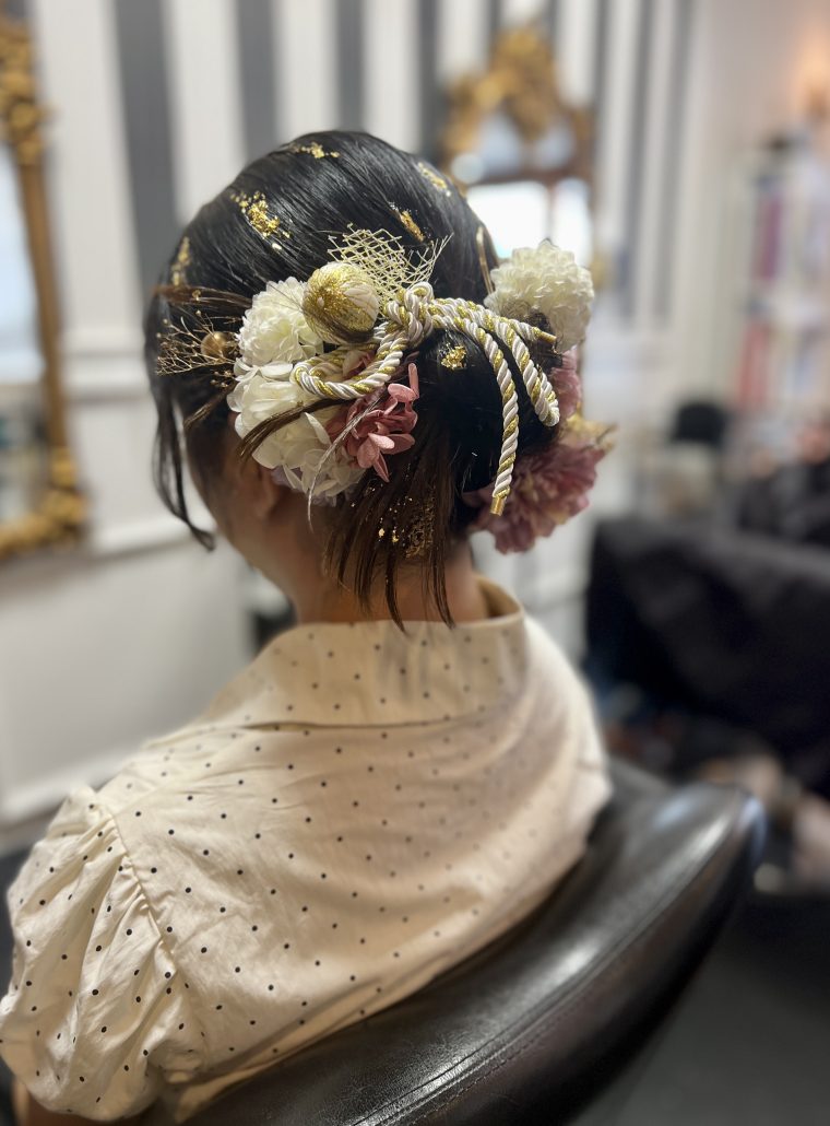 髪飾りで美しい仕上がりとなりました🌷