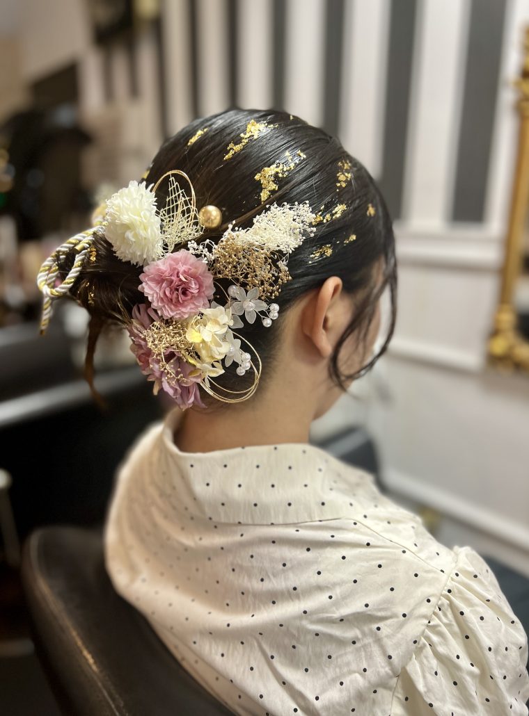 | 成人式にオススメなヘアセット✨ | ご来店頂きありがとう御座います🙌🏻 金箔もある事で、より美しくパッと目を引く 素敵な仕上がりですね✨ |