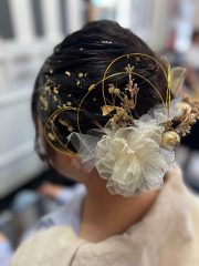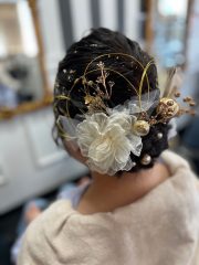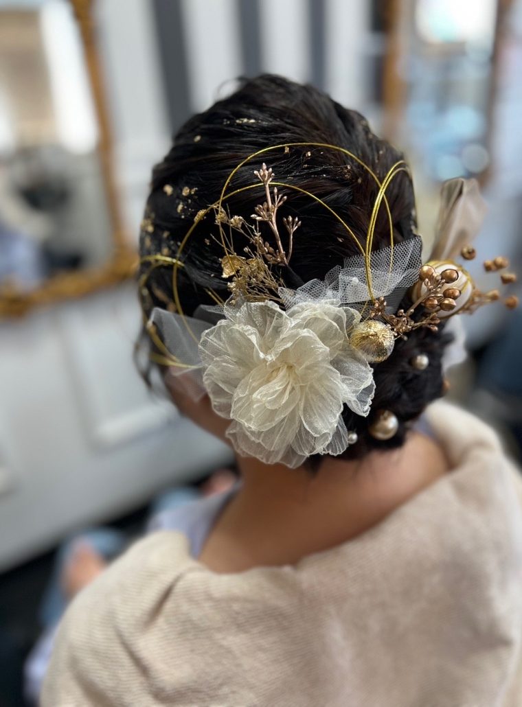 | 成人式にオススメなヘアセット🌼 | 白や金を基調とした髪飾りで 可憐な仕上がりとなりました✨ |