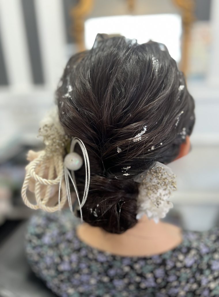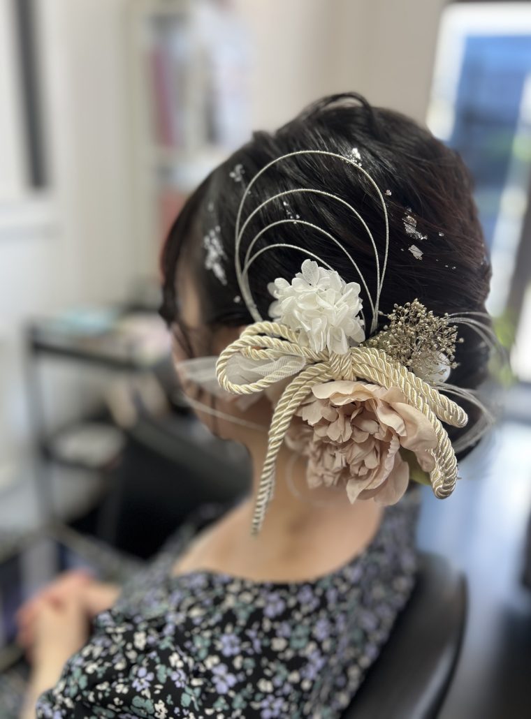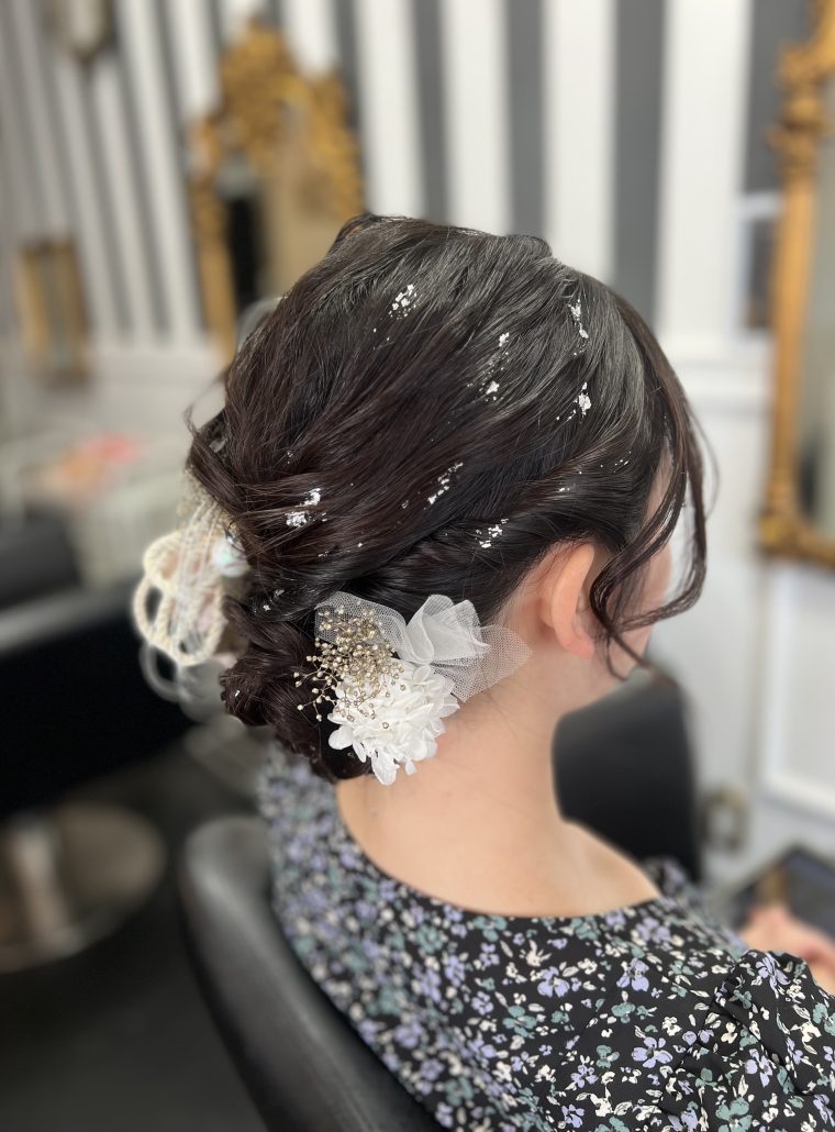 結婚式・七五三等の撮影・発表会・パーティー等様々なシーンに合うヘアセット。ドレスや着物に馴染むおしゃれなスタイリングをご提案します。