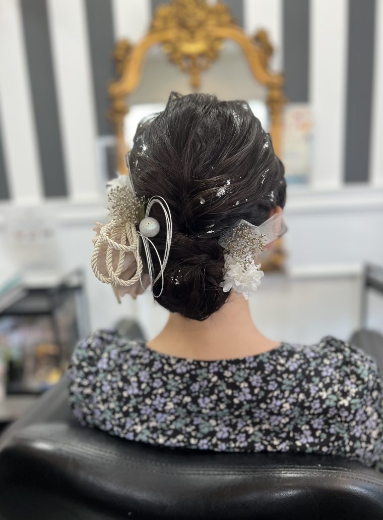 | 成人式にオススメなヘアセット💐 | ご来店いただきありがとうございます🤲🏻 大きめの華やかな髪飾りが アップのセットと合って、 とても素敵な仕上がりとなりました✨ |