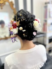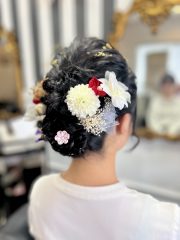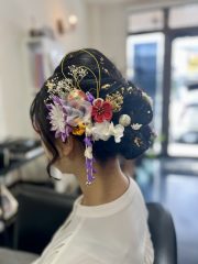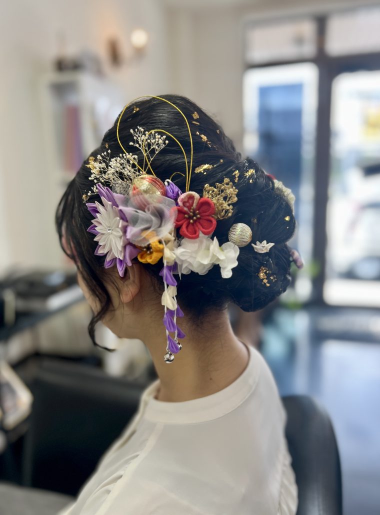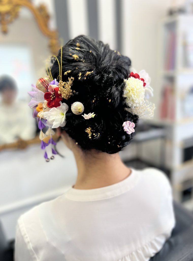 | 成人式にオススメなヘアセット💐 | ご来店頂きありがとう御座います🙌🏻 摘み細工の髪飾りや、色とりどりの華やかな 髪飾りで美しいセットとなりました✨ |