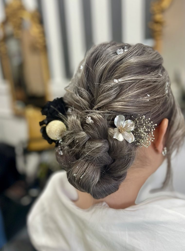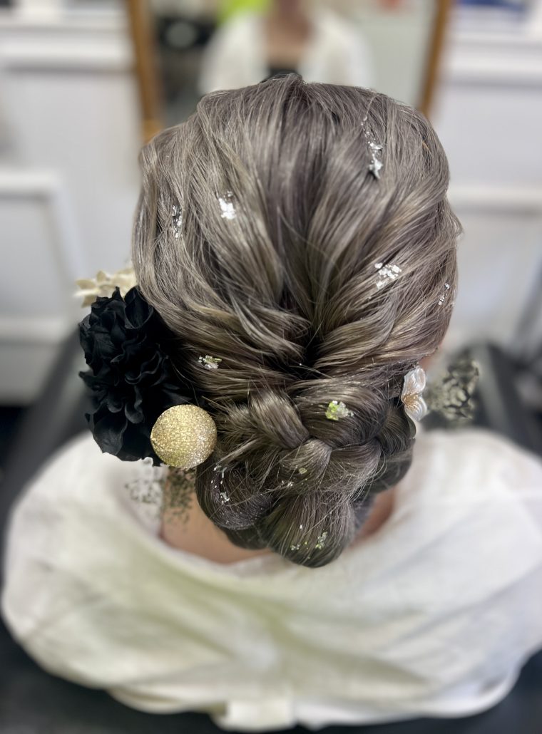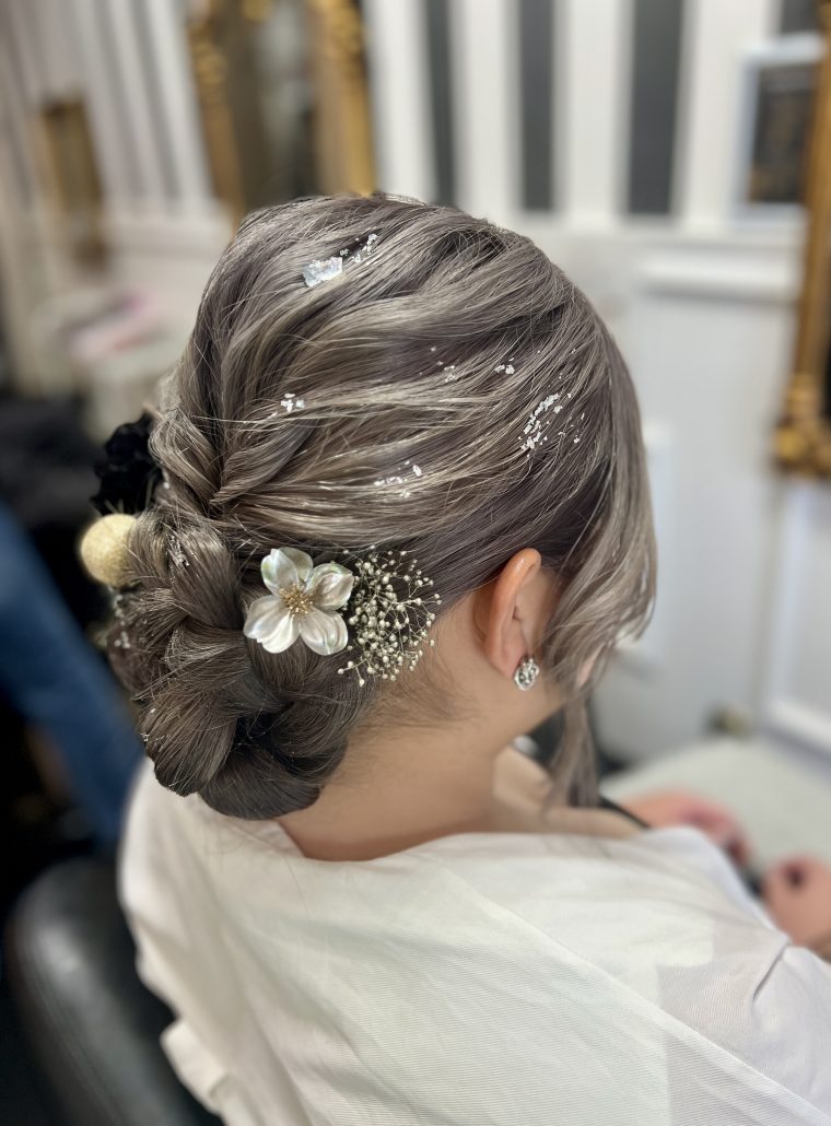 | 成人式にオススメのヘアセット♡ | ご来店頂きありがとうございます🤲🏻 銀箔も散りばめられている事で、より華やかな 透明感のある仕上がりとなっております🫧 ーーーーーーーーーーーーーーーーーーーーー 当店では、髪飾りも販売しております💐 お客様のお着物に合った、オーダーメイドの 商品をご用意しておりますので お悩みの際はお気軽にご相談ください🙇🏻🤍 |