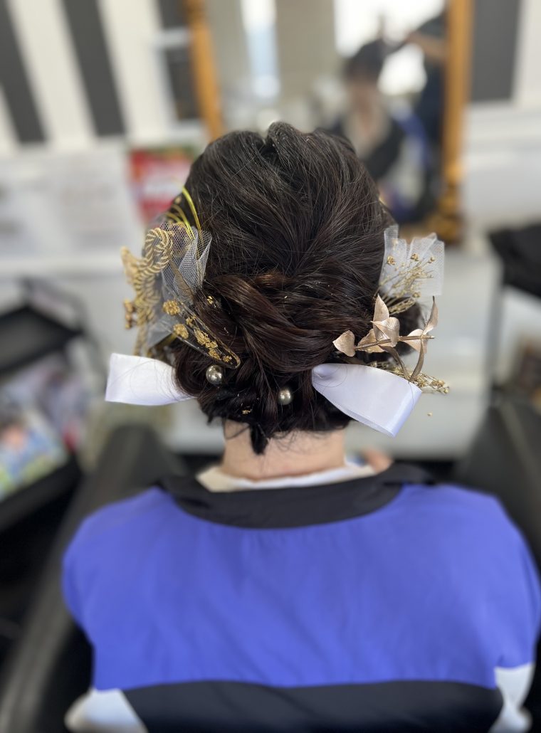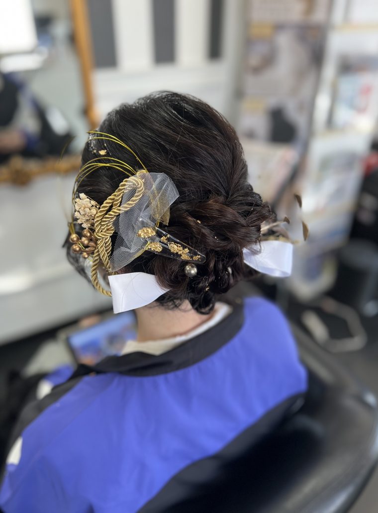 | 成人式にオススメヘアセット🎗️✳︎ | 成人式のヘアセット✨🫧 白と金を基調とした髪飾りが お客様の美しさをより一層引き立てる 仕上がりとなっております🌼 ご来店頂き有難うございました🙇🏻 ーーーーーーーーーーーーーーーーーーーーー 当店では、髪飾りも販売しております💐 お着物に合わせたオーダーメイドの商品を ご用意しておりますので お悩みの際はお気軽にご相談下さい |