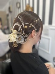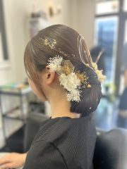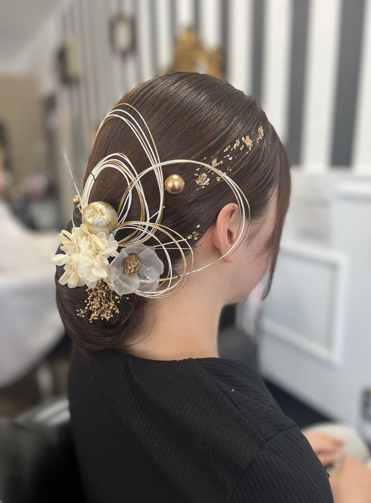 | 成人式にオススメのヘアセット💐✨ | ご来店頂きありがとうございます🫧💕 本日はシニヨンのセットです✨ ————————————————————— 当店では、髪飾りも販売しております💐 お客様のお着物に合わせた オーダーメイドの商品を ご用意しておりますので、 お悩みの際はお気軽にご相談ください🙇♀️♡ |