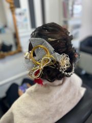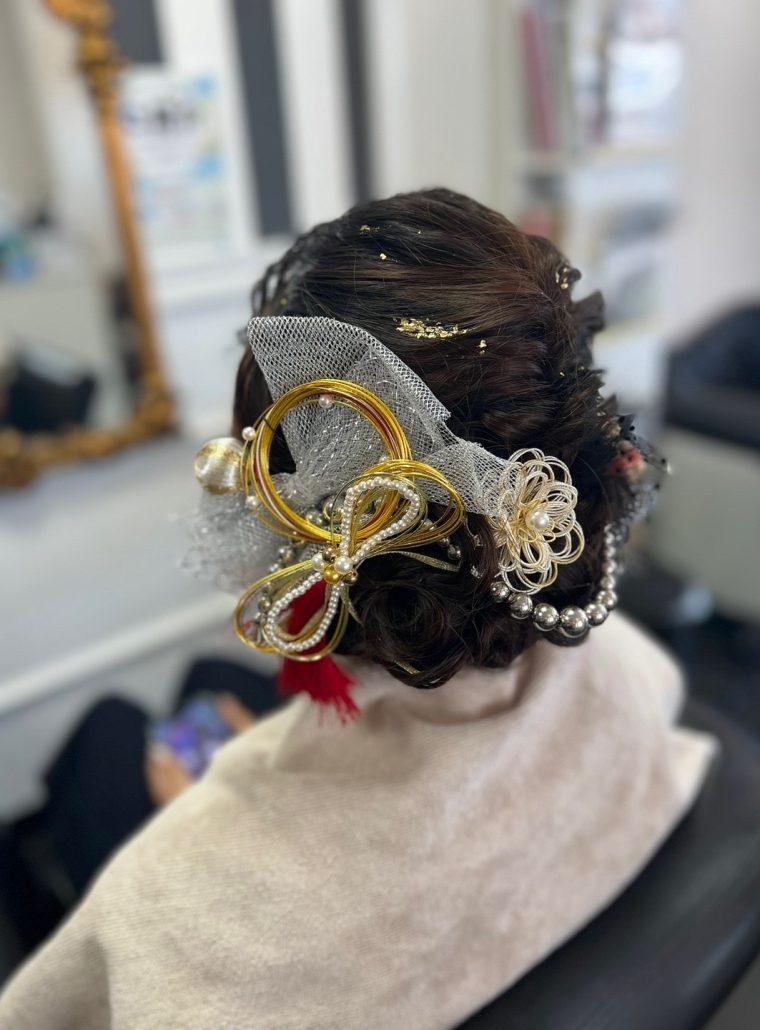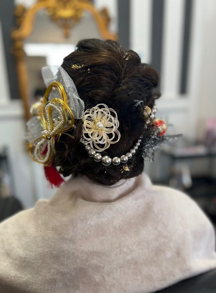 | 成人式にオススメのヘアセット🫧✨ | ご来店頂きありがとう御座います🙇🏻 金や銀の、華やかな髪飾りが お客様の洗練された雰囲気と合い、 素敵なセットとなりました✨🪻 ーーーーーーーーーーーーーーーーーーー 当店では、髪飾りも販売しております💐 お着物に合わせた、オーダーメイドの商品を ご用意しておりますので お悩みの際はお気軽にご相談下さい🙌🏻 |