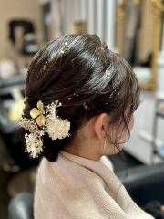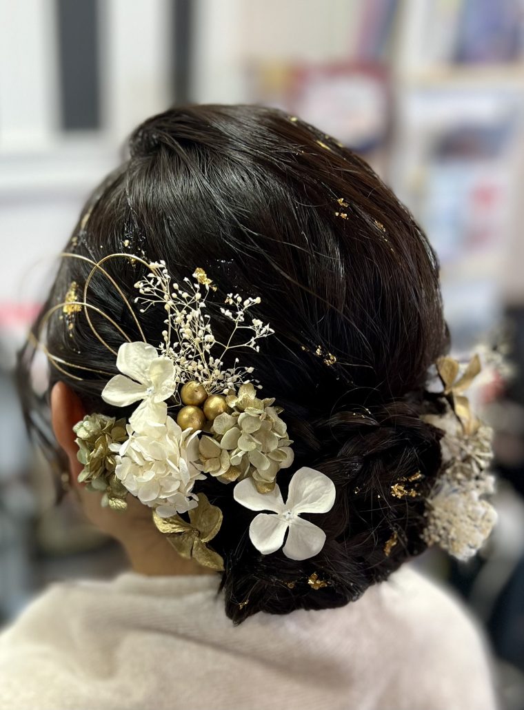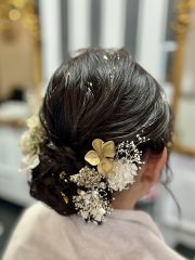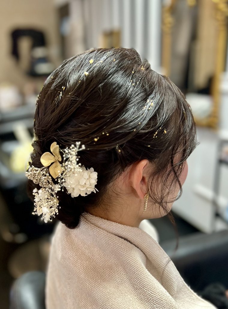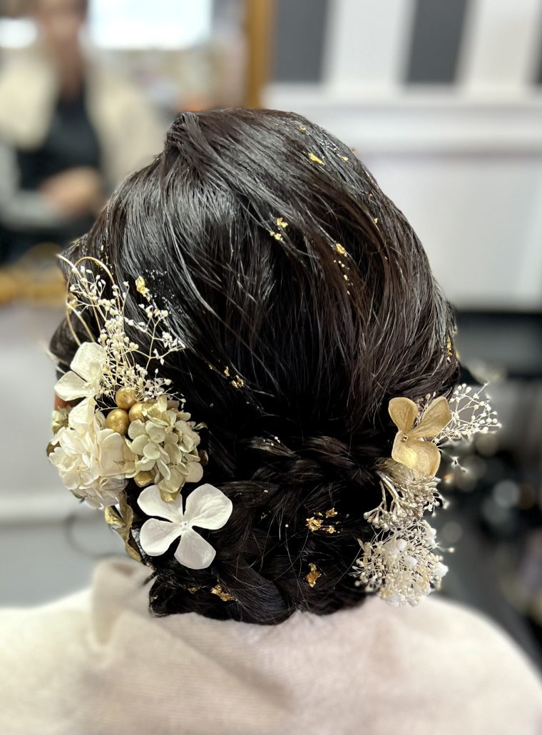 | 成人式にオススメヘアセット✨🫧 | 金箔がある事で、より一層華やかな セットとなっております✨ ご来店頂きありがとうございました🙇🏻💕 ーーーーーーーーーーーーーーーーーーーー 当店では、髪飾りも販売しております💐 お着物に合わせたオーダーメイドの商品を ご用意しておりますので、 お悩みの際はお気軽にご相談下さい🙇🏻💕 |
