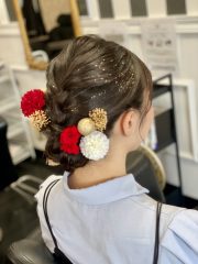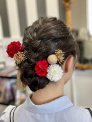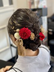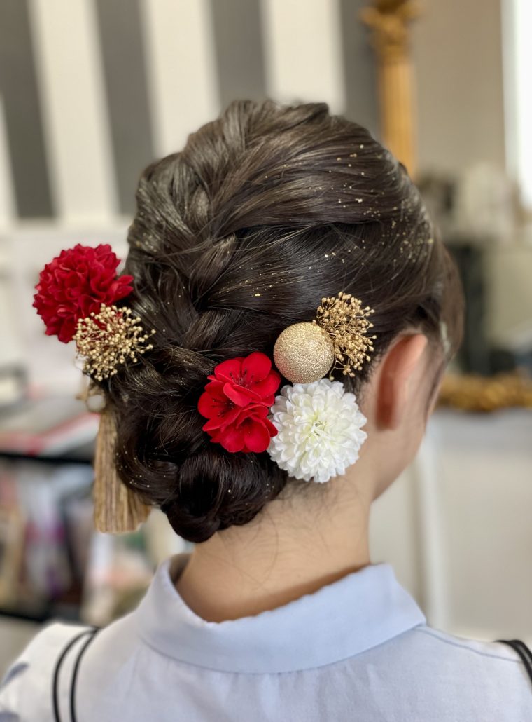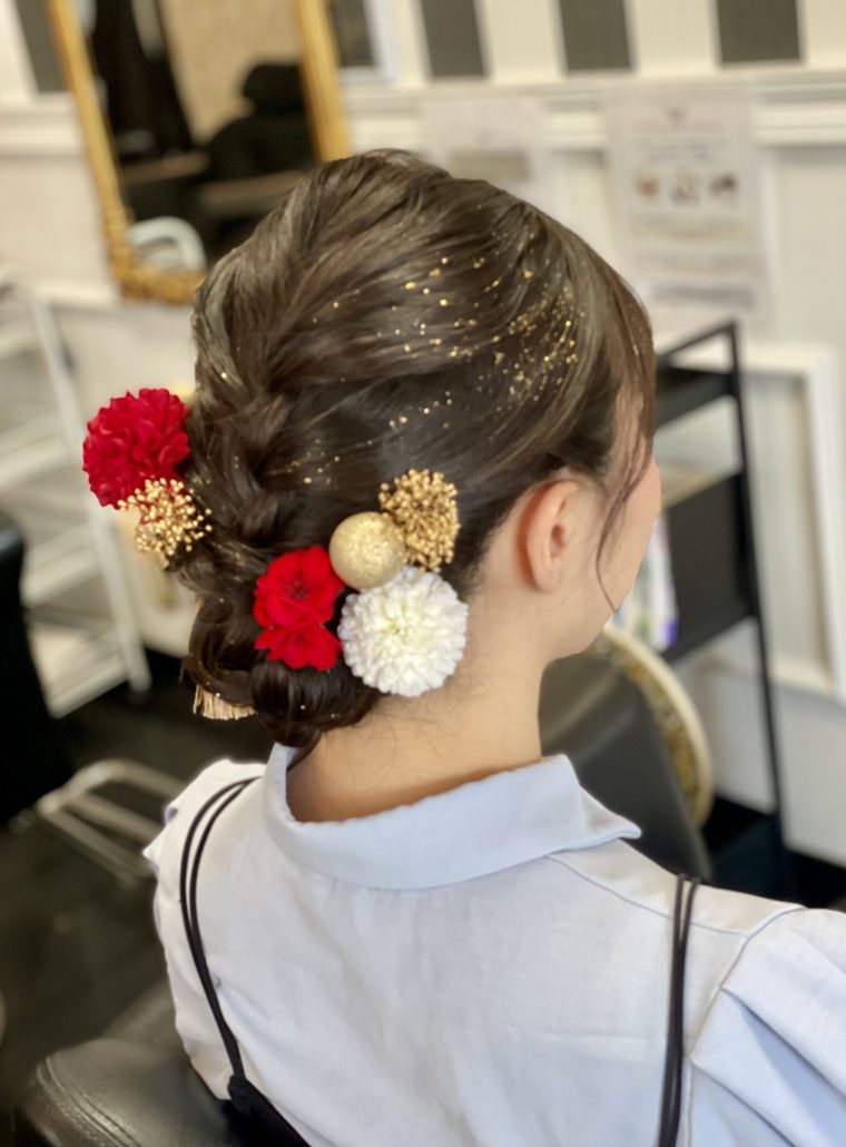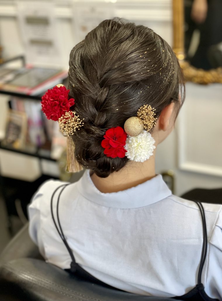 | 成人式のヘアセット🌹 | 金箔がある事でより一層パッと目を引く 仕上がりになっていますね🤍 ご来店頂きありがとうございました🙇🏻♡ ーーーーーーーーーーーーーーーーーーー 当店では髪飾りも販売しておりますので、 お悩みの際は、お気軽にご相談ください🤲🏻💕 お着物に合わせたオーダーメイドの商品も ご用意しております🌼✨ |