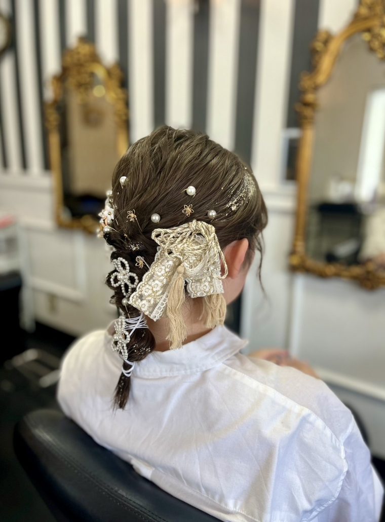 - お客様の可憐な雰囲気と、可愛らしい髪飾がとてもお似合いで素敵な仕上がりとなりました💕