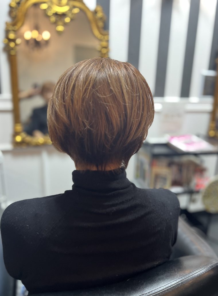 - 前下がりにする事で、襟足がすっきり見え、